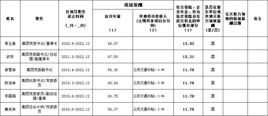 按照黑龍江省國(guó)資委《黑龍江省國(guó)資委出資企業(yè)負(fù)責(zé)人薪酬管理辦法》黑國(guó)資分〔2016〕202號(hào)文件精神,黑龍江省農(nóng)業(yè)投資集團(tuán)有限公司對(duì)由省國(guó)資委管理的集團(tuán)領(lǐng)導(dǎo)班子成員2022年度薪酬信息向社會(huì)披露如下。
