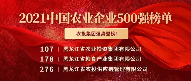 2021年12月,農(nóng)民日?qǐng)?bào)社發(fā)起第五屆中國(guó)農(nóng)業(yè)企業(yè)500強(qiáng)評(píng)價(jià)活動(dòng),黑龍江省農(nóng)業(yè)投資集團(tuán)有限公司以113億榮登500強(qiáng)榜單107位!