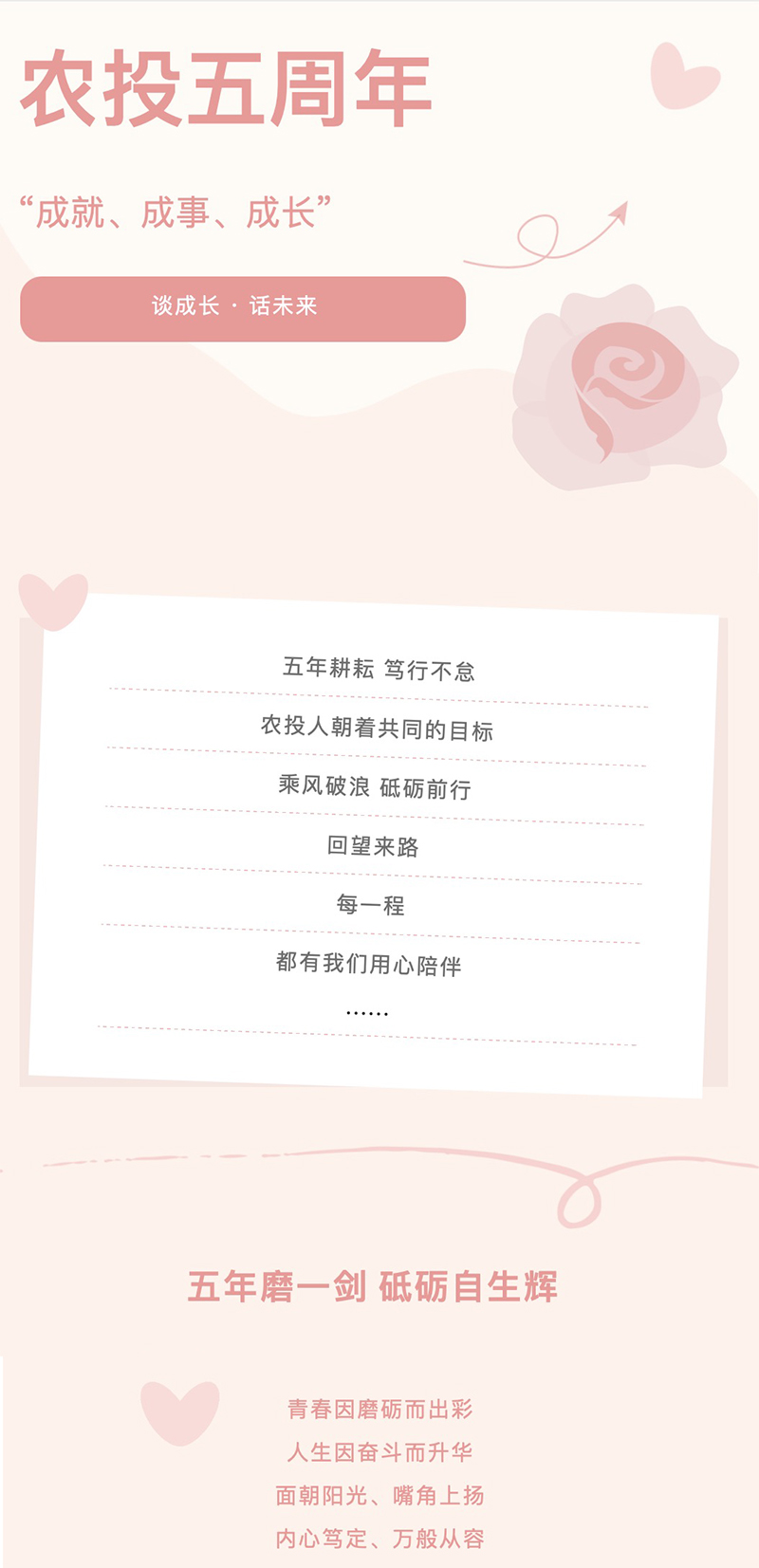 2019年3月,我有幸融入農(nóng)投集團(tuán)這個(gè)大家庭,五年間,我懷揣對過往的敬意,對當(dāng)下的熱愛,對未來的憧憬,以“行源于心,力源于志”的擔(dān)當(dāng),努力踐行“農(nóng)投人”的成事文化。“再見少年拉滿弓,不懼歲月不懼風(fēng)”的沉淀與蛻變成就了我人生中最美的五年。