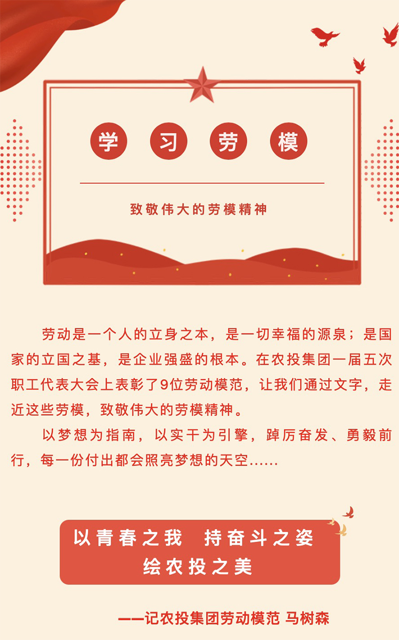 這是馬樹森在農(nóng)投集團(tuán)企業(yè)日寫下的《沁園春·創(chuàng)業(yè)記》,一直以來他時刻保持著這股創(chuàng)業(yè)的精氣神,敢拼敢闖敢干,不畏懼不氣餒不抱怨,在平凡的崗位上創(chuàng)不凡,在普通的工作中干出彩,成為農(nóng)投青年人學(xué)習(xí)的榜樣。