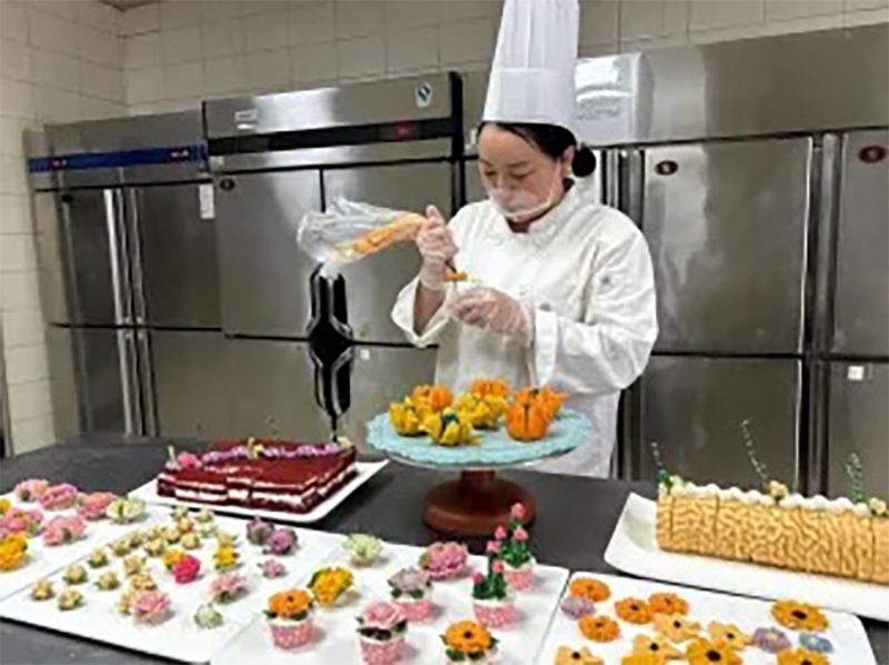 為了應(yīng)對“五一”假期餐飲高峰,金谷大廈的廚師和服務(wù)人員全部堅守在崗位上,給客人呈上最美味的菜肴。
