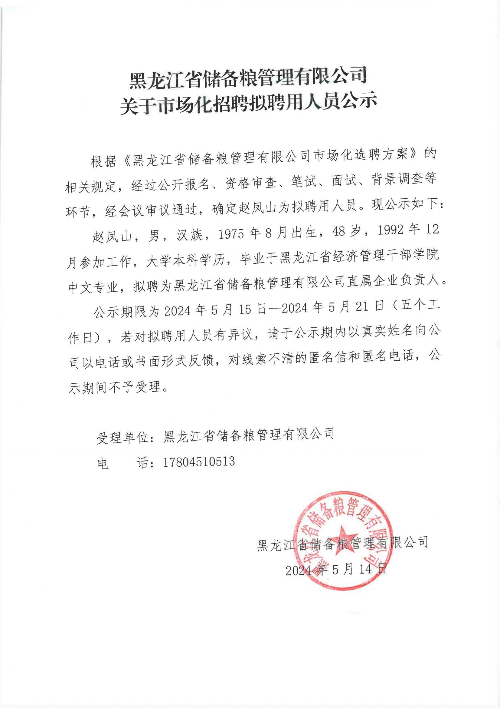 黑龍江省儲(chǔ)備糧管理有限公司關(guān)于市場(chǎng)化招聘擬聘用人員公示