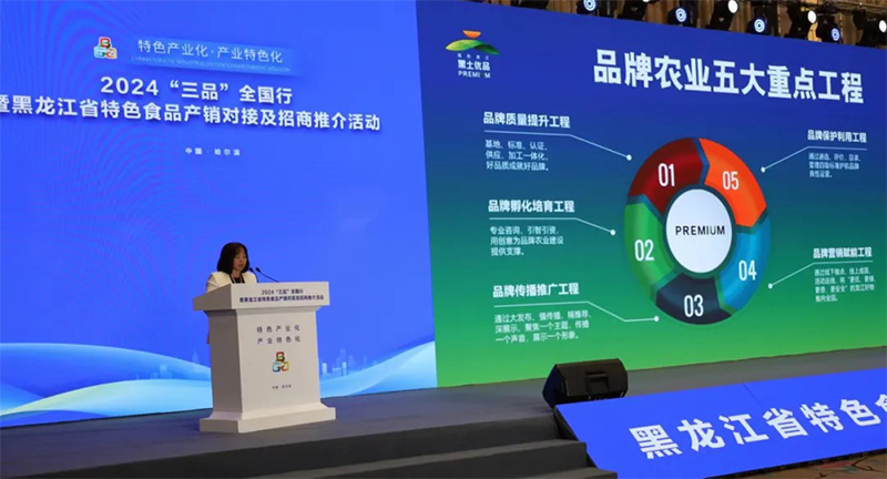 5月17日下午,由省工信廳主辦的“特色產業(yè)化產業(yè)特色化”2024“三品”全國行暨黑龍江省特色食品產銷對接及招商推介主題活動中,省農投食品集團做“黑土優(yōu)品”及地方特色食品產業(yè)推介,從營銷渠道、定制農業(yè)、農副產品精深加工、零售及專賣合作四個方面進行產銷對接及招商,引起了中外來賓的廣泛關注。
