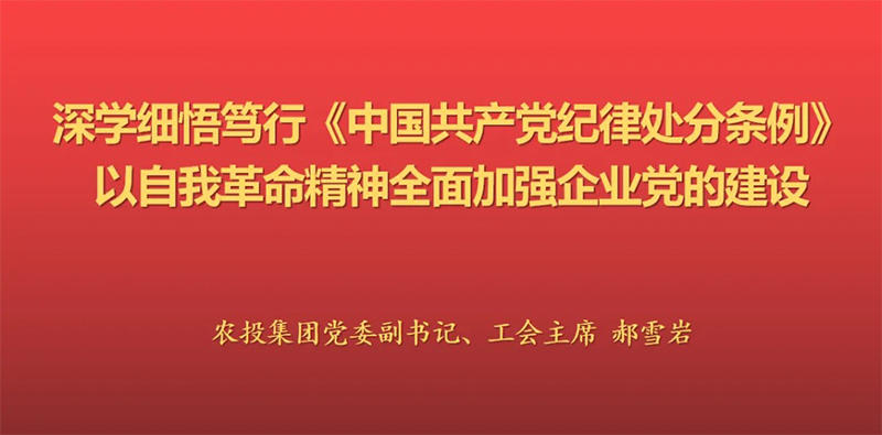 為深入貫徹黨中央部署和省委總體安排,推進黨紀學習教育不斷走深走實,5月24日,農投集團黨委副書記、工會主席郝雪巖到黨建聯系點黑龍江省農投生物產業(yè)投資有限公司開展工作調研指導工作,了解各項工作進展和企業(yè)經營發(fā)展情況,并以《深學細悟篤行<中國共產黨紀律處分條例>,以自我革命精神全面加強企業(yè)黨的建設》為題作專題黨課輔導。農投生物黨委書記、董事長武曉東參加主持會議。