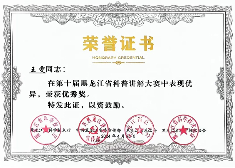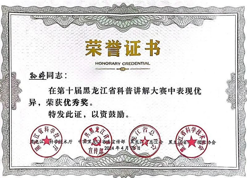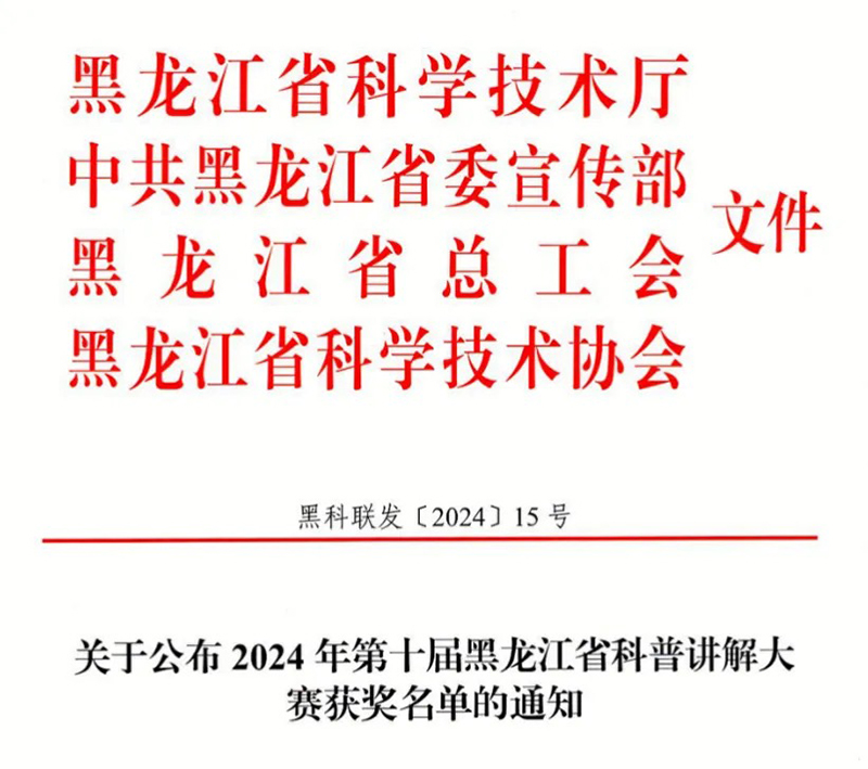 近日,黑龍江省科學技術(shù)廳公布2024年第十屆黑龍江省科普講解大賽獲獎名單,省農(nóng)投集團權(quán)屬企業(yè)農(nóng)投生物王雯、龍科種業(yè)孫婷榮獲優(yōu)秀獎。本次活動由省科技廳、省委宣傳部、省總工會、省科學技術(shù)協(xié)會主辦,哈爾濱市科技企業(yè)孵化器協(xié)會、深圳(哈爾濱)產(chǎn)業(yè)園投資開發(fā)有限公司承辦。