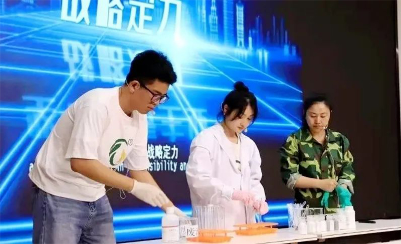 此前,農(nóng)投生物已參加2次科學(xué)實驗展演大賽,并取得優(yōu)異成績。本次參賽作品為“農(nóng)業(yè)未來-化肥辨識與智慧農(nóng)業(yè)發(fā)展”,實驗主題圍繞化肥成分的辨析,以“小品+實驗操作”的形式合作完成,根據(jù)實驗現(xiàn)象解釋科學(xué)實驗原理,揭示了化肥對于農(nóng)作物營養(yǎng)生長和繁殖生長過程的重要作用,同時進(jìn)一步結(jié)合實踐應(yīng)用向大壟密植、水肥一體化的單產(chǎn)提升項目和智慧農(nóng)業(yè)項目進(jìn)行了講解演示。