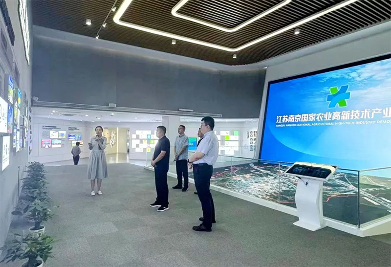 在南京國家農(nóng)業(yè)高新技術(shù)產(chǎn)業(yè)示范區(qū)調(diào)研期間,楊光輝一行在南京國家農(nóng)業(yè)高新技術(shù)產(chǎn)業(yè)示范區(qū)白馬鎮(zhèn)黨委書記崔長龍,農(nóng)高區(qū)總經(jīng)理王鑫海,南京市農(nóng)業(yè)農(nóng)村局市場與信息化處處長高嶺的陪同下詳細了解了農(nóng)業(yè)企業(yè)的生產(chǎn)流程、研發(fā)能力以及市場定位,對示范區(qū)內(nèi)企業(yè)的創(chuàng)新能力和市場競爭力給予了高度評價。在交流中,楊光輝向園區(qū)內(nèi)農(nóng)業(yè)企業(yè)介紹了農(nóng)投食品集團在呼蘭區(qū)的產(chǎn)業(yè)園項目,并對園區(qū)內(nèi)農(nóng)業(yè)企業(yè)發(fā)出入駐邀請,進一步夯實合作根基。