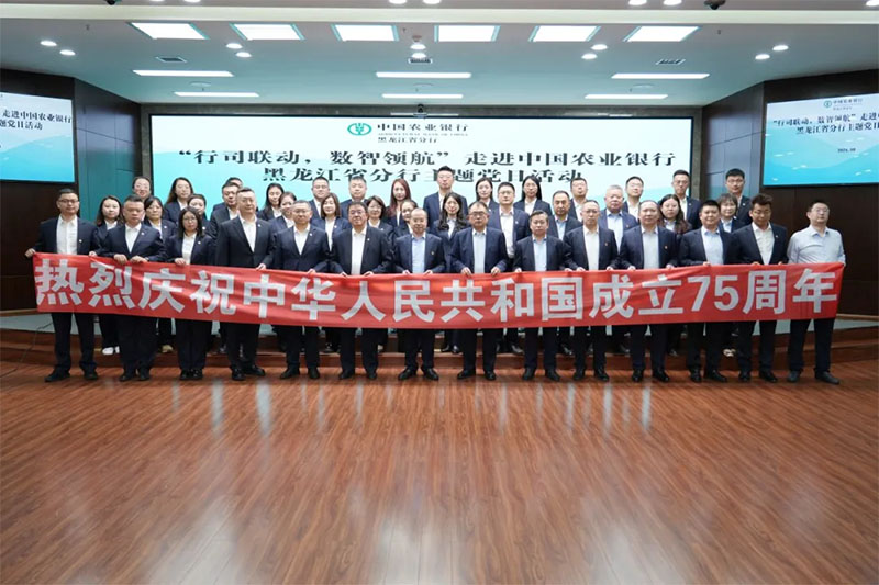9月27日,農(nóng)投集團(tuán)總會計師魏成林一行赴中國農(nóng)業(yè)銀行黑龍江省分行開展“行司聯(lián)動·數(shù)智領(lǐng)航”慶祝中華人民共和國成立75周年主題黨日活動。中國農(nóng)業(yè)銀行黑龍江省分行黨委委員、副行長兼哈爾濱分行黨委書記、行長孟喆參加活動。