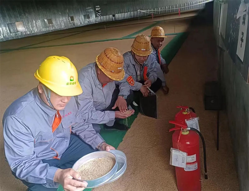 良友金谷工作人員認(rèn)真檢查糧食質(zhì)量