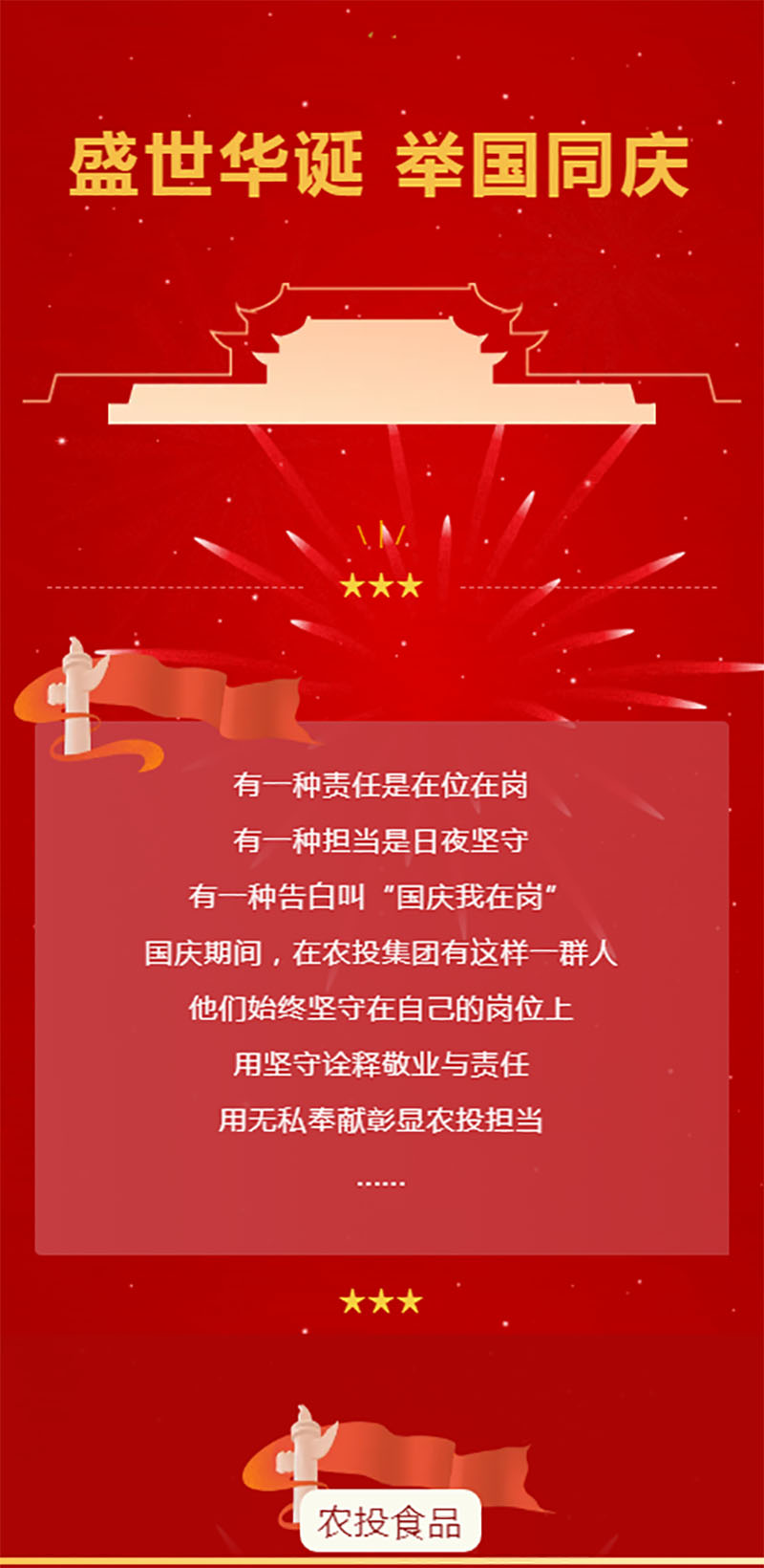 國慶期間,黑龍江省農(nóng)投食品集團(tuán)有限公司廣大干部員工爭分奪秒,奮戰(zhàn)在生產(chǎn)經(jīng)營一線,從辦公區(qū)到生產(chǎn)車間,處處洋溢著祥和有序的工作氛圍,他們在平凡崗位上默默耕耘,在各個角落里發(fā)光發(fā)熱,用實(shí)際行動詮釋著“節(jié)日我在崗,工作不松勁”的奉獻(xiàn)精神,用始終如一的堅守,詮釋國資國企擔(dān)當(dāng),用拼搏奮斗的身姿,書寫公司發(fā)展精彩答卷。