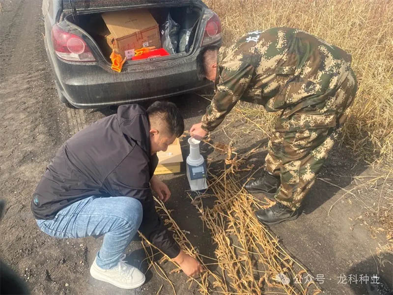 生產(chǎn)中心人員在大豆繁育田測試大豆水分