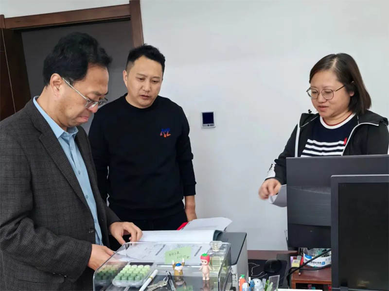 在農(nóng)投食品,郝雪巖向相關(guān)負(fù)責(zé)人詳細(xì)了解了目前產(chǎn)品的市場(chǎng)開(kāi)發(fā)、市場(chǎng)定位以及產(chǎn)品包裝的設(shè)計(jì)等情況,同時(shí)對(duì)市場(chǎng)的開(kāi)發(fā)及定位給出了指導(dǎo)意見(jiàn)。
