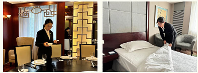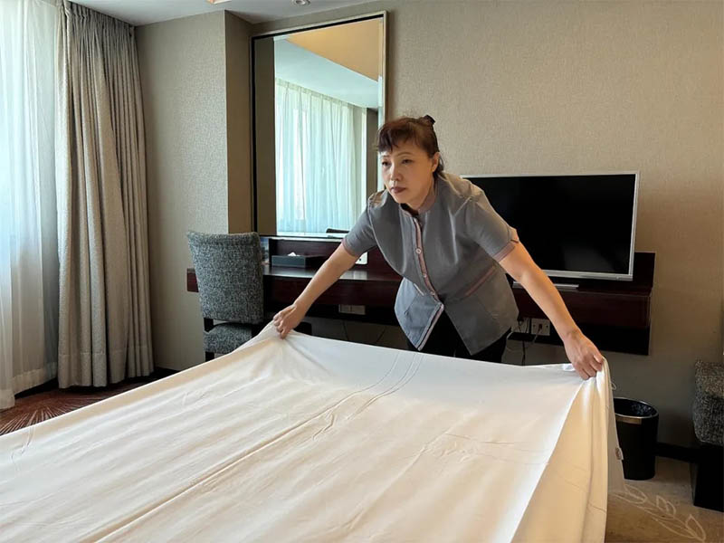 還有這樣一群可愛的人,他們是金谷商務(wù)清掃員,堅守崗位、默默奉獻是他們的座右銘,用他們的“舍”和“離”換來客人出游的便利,工作加班加點,不辭辛勞地打掃房間、更換床單被罩、補充日用品,為客人提供整潔舒適的住宿環(huán)境。
