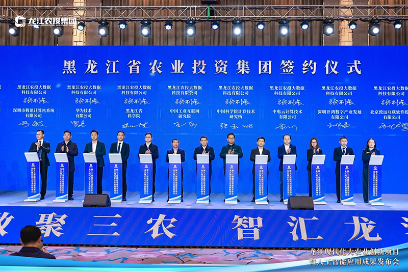 會(huì)上,農(nóng)投大數(shù)據(jù)公司與中國(guó)科學(xué)院計(jì)算技術(shù)研究所、工聯(lián)院網(wǎng)絡(luò)所、中國(guó)電子云、黑龍江省科學(xué)院、深開(kāi)鴻、華為技術(shù)有限公司、致遠(yuǎn)互聯(lián)、騰訊云、商湯科技、黑龍江移動(dòng)、哈爾濱聯(lián)飛、鄭州華糧等12家單位簽署了戰(zhàn)略合作協(xié)議,標(biāo)志著各方將在智慧農(nóng)業(yè)領(lǐng)域展開(kāi)深度合作,共同推動(dòng)黑龍江省農(nóng)業(yè)數(shù)智化進(jìn)程。發(fā)布會(huì)現(xiàn)場(chǎng)還展示了“伏羲農(nóng)場(chǎng)”無(wú)人智慧農(nóng)機(jī)裝備和無(wú)人機(jī)試飛、水肥一體化等設(shè)備,展現(xiàn)了智慧農(nóng)業(yè)的先進(jìn)技術(shù)和應(yīng)用成果。