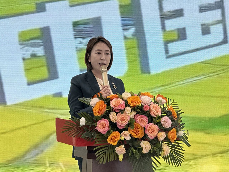 農(nóng)投食品集團(tuán)副總經(jīng)理朱芳冰正式發(fā)布樺樹汁系列新產(chǎn)品。