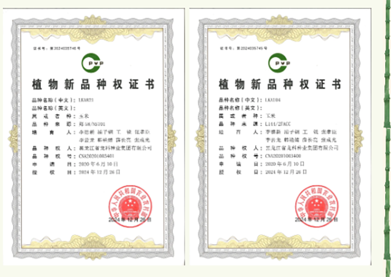 近日,黑龍江省龍科種業(yè)集團(tuán)有限公司在生物育種領(lǐng)域取得重大突破,成功獲得由農(nóng)業(yè)農(nóng)村部頒發(fā)的玉米自交系LKA104和LKA821兩項(xiàng)植物新品種權(quán)證書(shū)。這是龍科種業(yè)在玉米種質(zhì)資源創(chuàng)新道路上的又一里程碑,標(biāo)志著龍科種業(yè)在品種研發(fā)和自主知識(shí)產(chǎn)權(quán)布局方面邁出了堅(jiān)實(shí)步伐!
