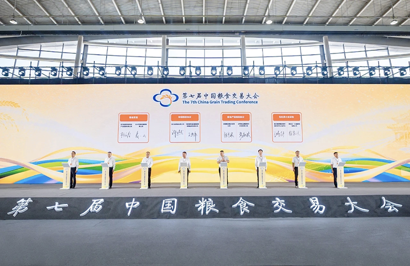 7月12日上午,第七屆中國糧食交易大會(以下簡稱“糧交大會”)在遼寧沈陽盛大開幕。農投集團黨委書記、董事長、總經理楊世志率團出席開幕活動,集團黨委委員、副總經理唐浩陪同參加相關活動。 聚焦前沿深化戰(zhàn)略合作交流 本屆糧交大會以“糧安天下聚合力、產銷融通促發(fā)展”為主題,是落實國家糧食安全戰(zhàn)略的重要平臺。農投集團積極參與大會系列活動,在7月11日國家糧食和物資儲備局組織召開的座談會上,楊世志與中糧集團、中儲糧集團、廈門象嶼集團等大型涉糧企業(yè)負責人進行深入交流,共同探討糧食儲備、精深加工的未來發(fā)展路徑與廣闊合作空間。 精心布展龍江糧油引關注 △國家發(fā)展和改革委員會黨組成員,國家糧食和物資儲備局黨組書記、局長劉煥鑫;黑龍江省發(fā)改委黨組成員、副主任,省糧食和物資儲備局黨組書記、局長李瑩到農投集團展區(qū)蒞臨指導。 在黑龍江省糧儲局指導下,農投集團精心組織所屬龍糧集團、省儲備糧公司、農投食品集團、交易市場及金谷大廈共5戶企業(yè)參展。集團圍繞“深化產銷合作、拓展糧油市場、展示糧食交易”三大主線展開活動。專場推介亮點紛呈。在“黑土優(yōu)品龍江糧油”專場推介會上,農投集團以“黑土糧芯·國之大者”為主題,向全國市場強力推廣“更優(yōu)、更綠、更香、更安全”的龍江優(yōu)質糧油品牌?,F場設置的優(yōu)質糧油展區(qū)和品鑒區(qū)人氣高漲,五常大米、鮮食玉米、雜糧、白樺汁等特色產品深受客商和消費者喜愛。特別是金谷大廈帶來的雪玉谷五常大米和創(chuàng)新的鮮食玉米冰淇淋成為全場焦點,兩小時內便告售罄。精準對接成果豐碩。展會期間,農投集團積極與遼、滇、魯等多省糧食倉儲加工企業(yè)洽談對接。通過發(fā)布我省糧源信息,參與多場糧油供需洽談會和交易對接,成功達成原糧銷售意向逾4億元。 借力平臺交易規(guī)模創(chuàng)新高 作為大會交易平臺的重要參與者,農投集團權屬交易市場自3月20日糧交大會專場交易啟動至7月12日,高效組織動員平臺會員企業(yè)參與專場交易,累計舉辦專場交易會175場,實現上市量179.68萬噸,成交量109.07萬噸,有力彰顯了農投集團在全國糧食流通領域的渠道優(yōu)勢與影響力。 把握契機筑牢糧食安全基石 參加本屆糧交大會是農投集團貫徹落實習近平總書記視察龍江重要講話重要指示精神以及省委省政府決策部署的重要行動。集團正堅定不移聚焦主責主業(yè),在“1149”工程戰(zhàn)略體系引領下,堅決扛起“糧食安全壓艙石”的政治使命,積極整合省內優(yōu)質資源推動轉型發(fā)展。未來,農投集團將充分把握糧交會帶來的機遇,依托黑龍江“北糧南運”的戰(zhàn)略樞紐地位,深化與全國糧食產銷儲企業(yè)的戰(zhàn)略合作,拓寬倉儲貿易渠道,提升倉儲利用效率,持續(xù)為保障國家糧食安全注入強勁動力。