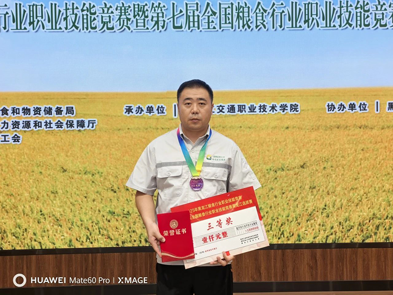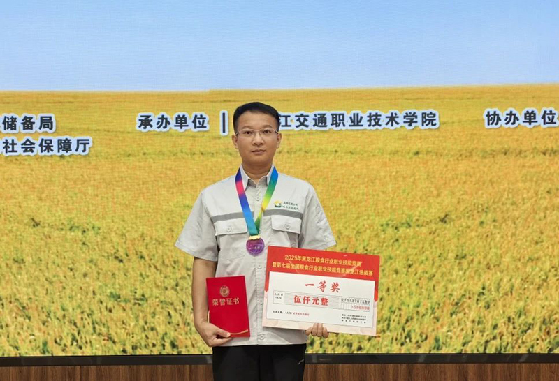 8月12日,2025年黑龍江糧食行業(yè)職業(yè)技能競賽暨第七屆全國糧食行業(yè)職業(yè)技能競賽黑龍江選拔賽在黑龍江交通職業(yè)技術(shù)學(xué)院舉行。經(jīng)過激烈角逐,農(nóng)投集團(tuán)儲(chǔ)備糧哈爾濱直屬庫孫智軍榮獲(糧油)倉儲(chǔ)管理員職業(yè)職工組一等獎(jiǎng)、周海洋榮獲農(nóng)產(chǎn)品食品檢驗(yàn)員職業(yè)企業(yè)職工組三等獎(jiǎng),農(nóng)投集團(tuán)榮獲優(yōu)秀組織獎(jiǎng),省糧食行業(yè)協(xié)會(huì)榮獲特別貢獻(xiàn)獎(jiǎng)。